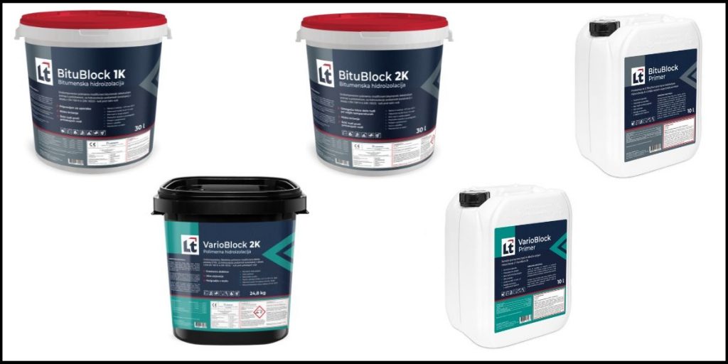 • premazne hidroizolacije na osnovi bitumna ali lateks cementnih mešanic;