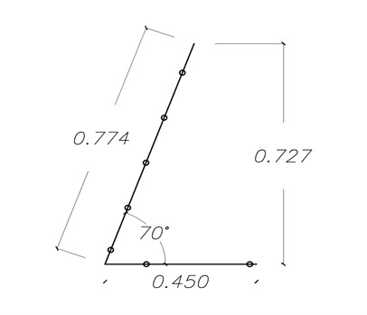 ARMATURNI OPAŽ 4,3 m + 8 SIDER, KOT 70°, dolžina 4.3m, višina 72cm (vgrajena višina cca 65cm), noga 45cm + 8 sider, OSEBNI PREVZEM