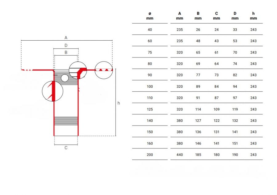 Odtočnik vertikalni – TPE za bitumen, dolžina 240 mm FI 40 mm